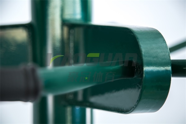 为保障器材的质量和使用寿命,国家标准中明确规定 主要承载主立柱尺寸不小于114*2.75mm 豪冠所有主立柱尺寸为114*3mm 主材壁厚为3mm,优于国标标准,绝不偷工减料